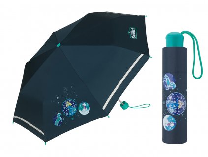 Dráty deštníku mají reflexní pásky, bezpečné plastové kulaté...